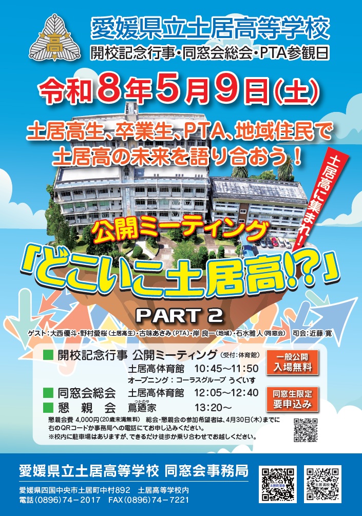 同窓生、地域の皆さま、是非、土居高校にご参集ください!