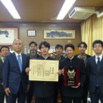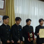 3月24日(火)、本校地域デザイン部が「愛顔のえひめ賞」(知事表彰)を受賞しました。県庁で行われた表彰式には5名の部員が参加し、中村知事から賞状と楯をいただきました。