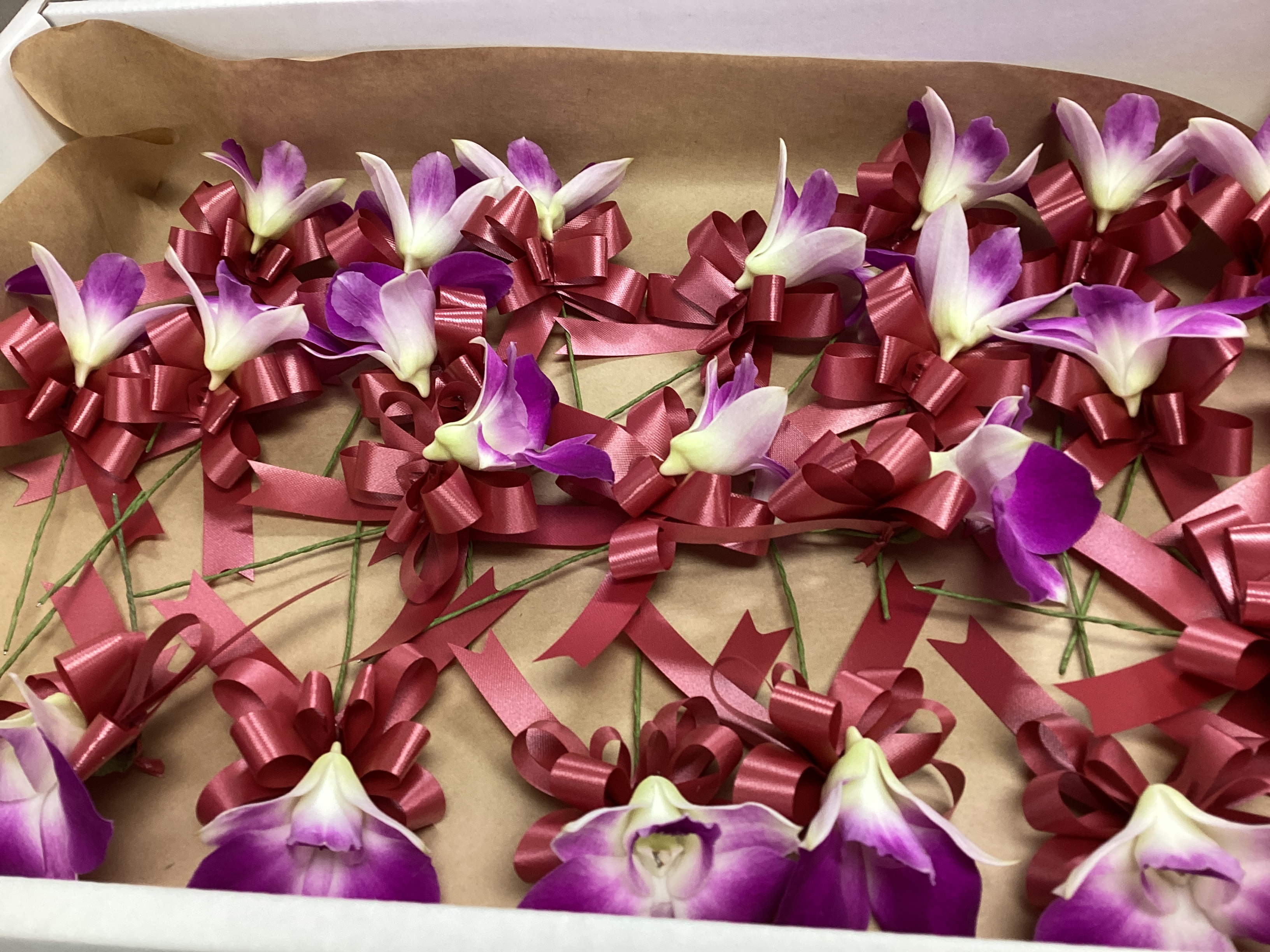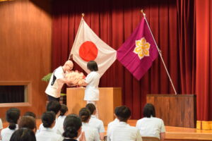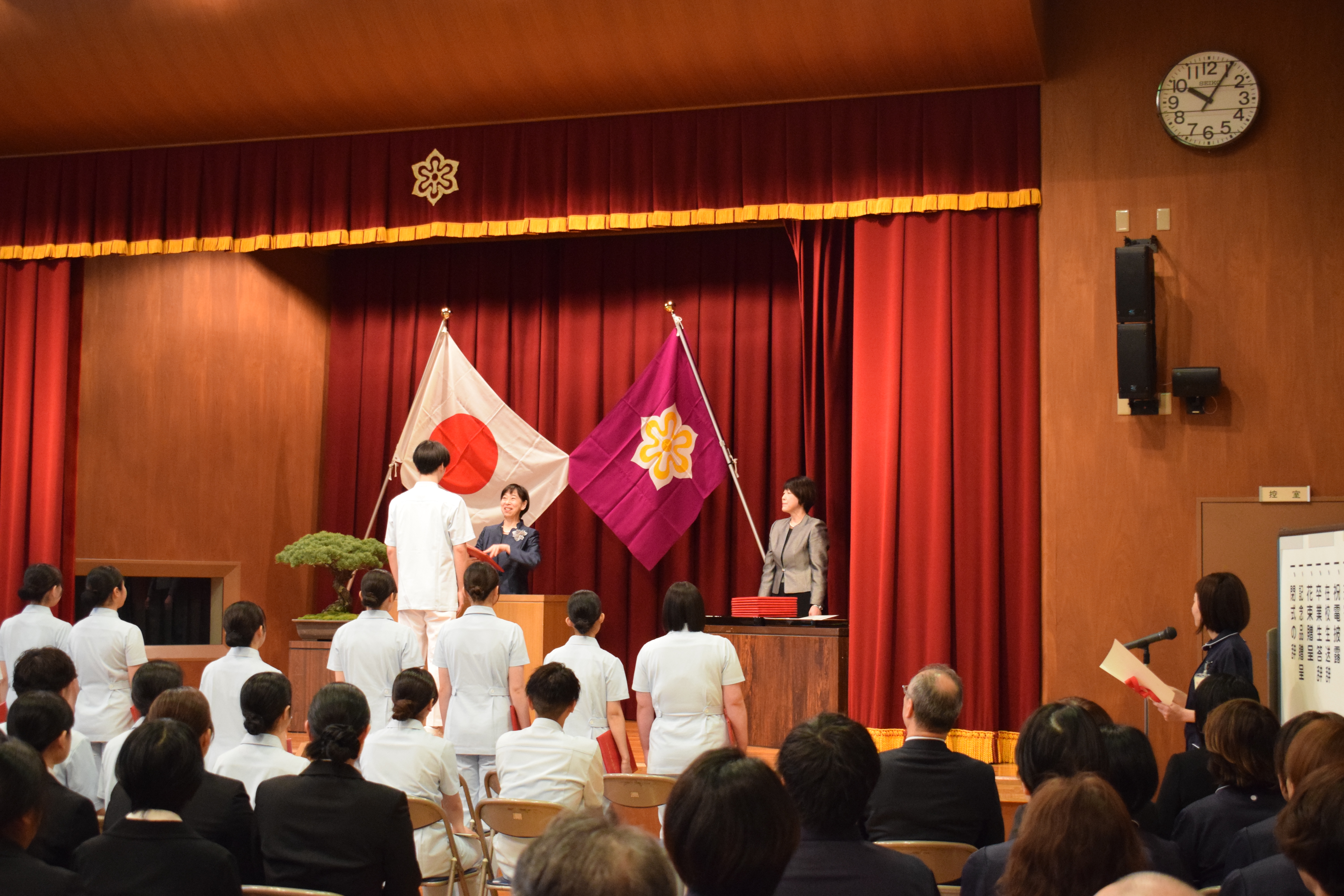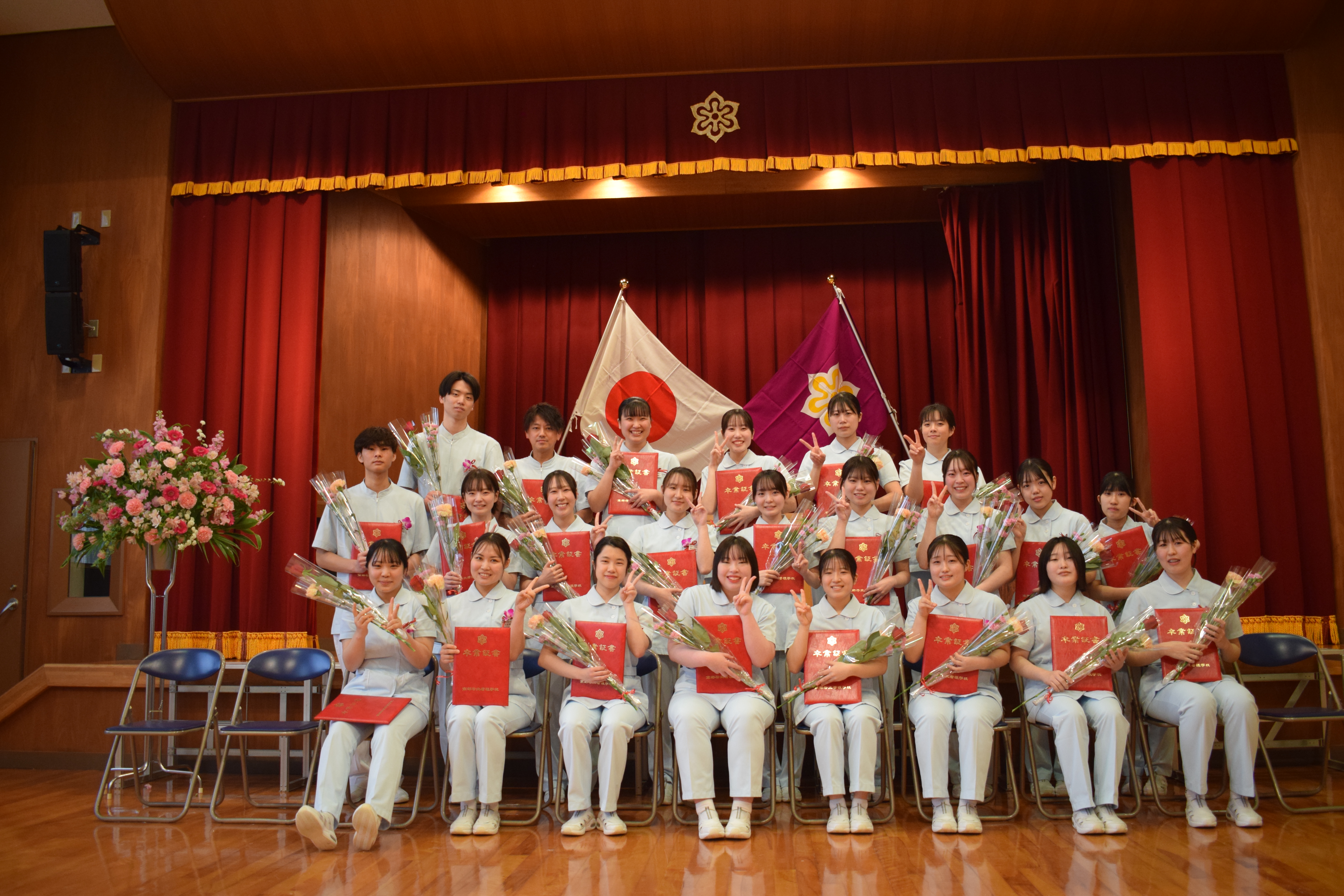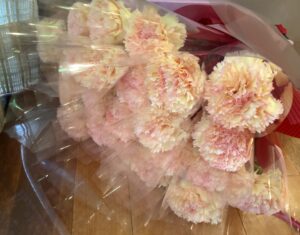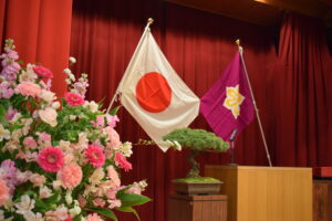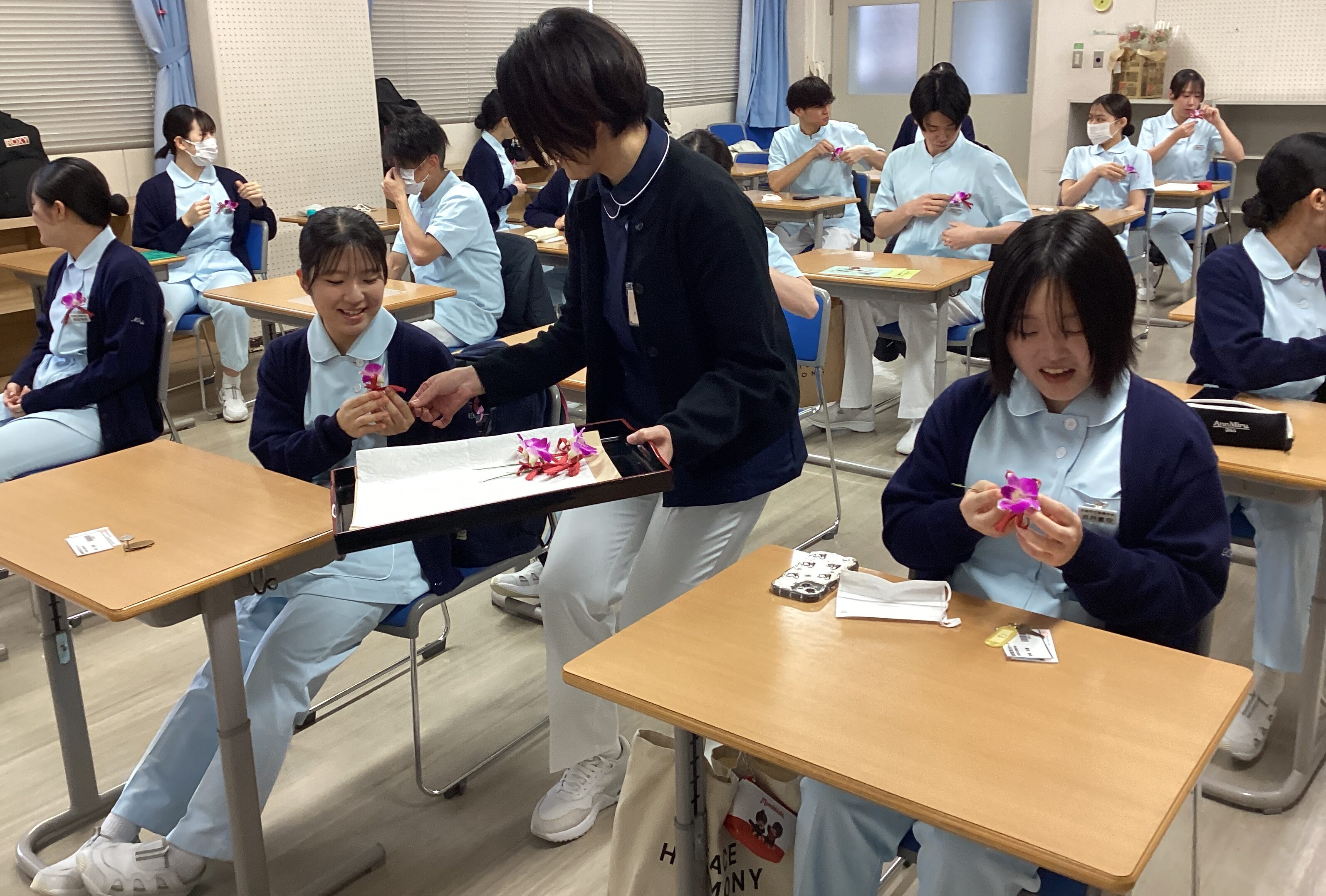 同窓会より生花のコサージュ,カーネーションの花束を贈呈しました。