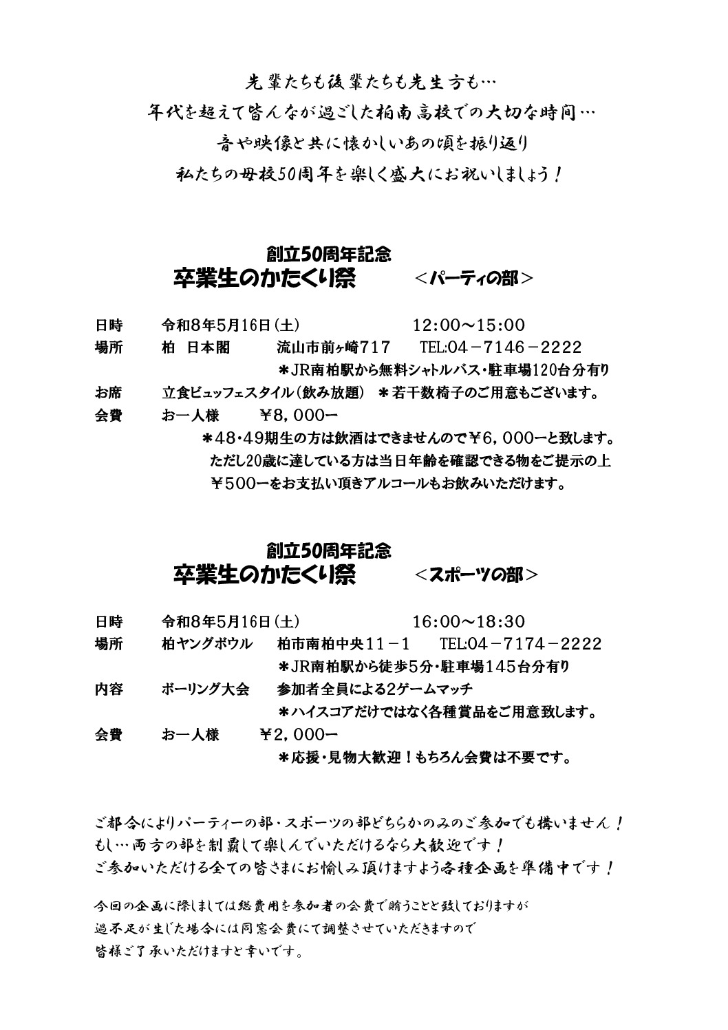 旧教職員の皆さまへ【卒業生のかたくり祭「ご案内」】