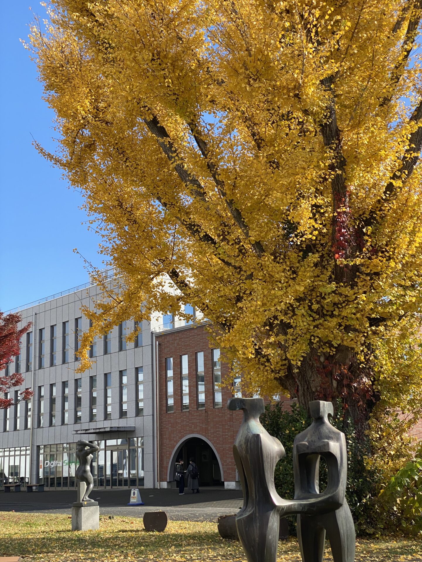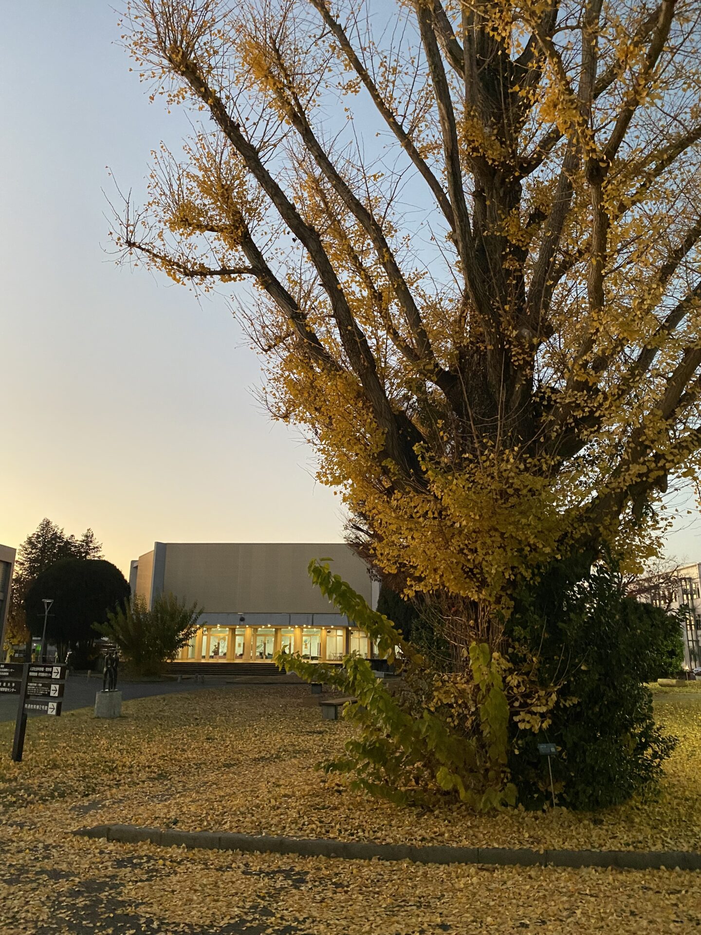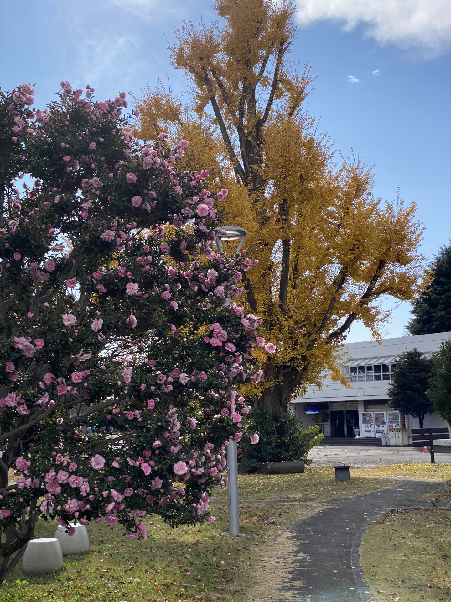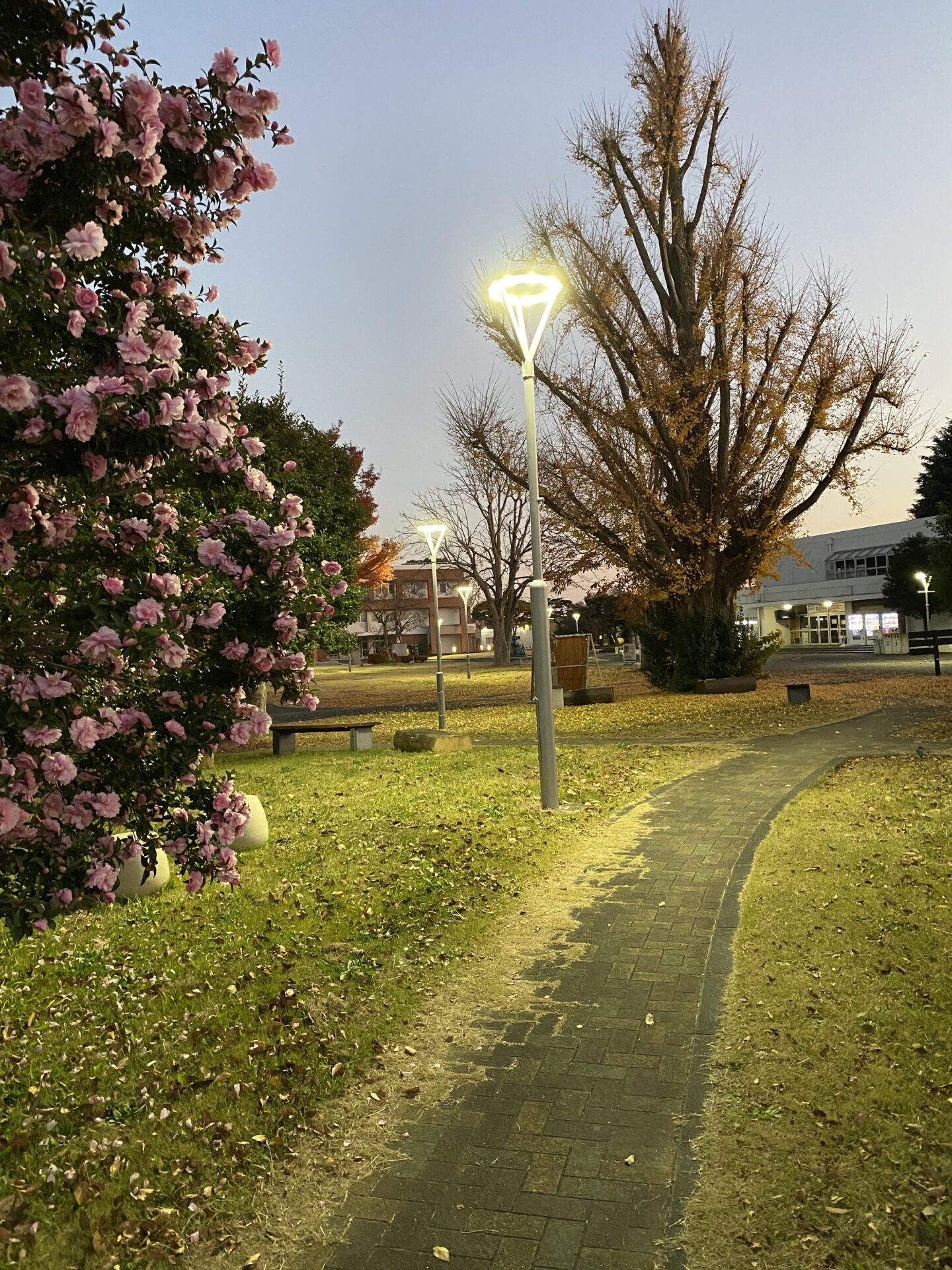 2025年秋の夕暮れ「椿と銀杏と小径」