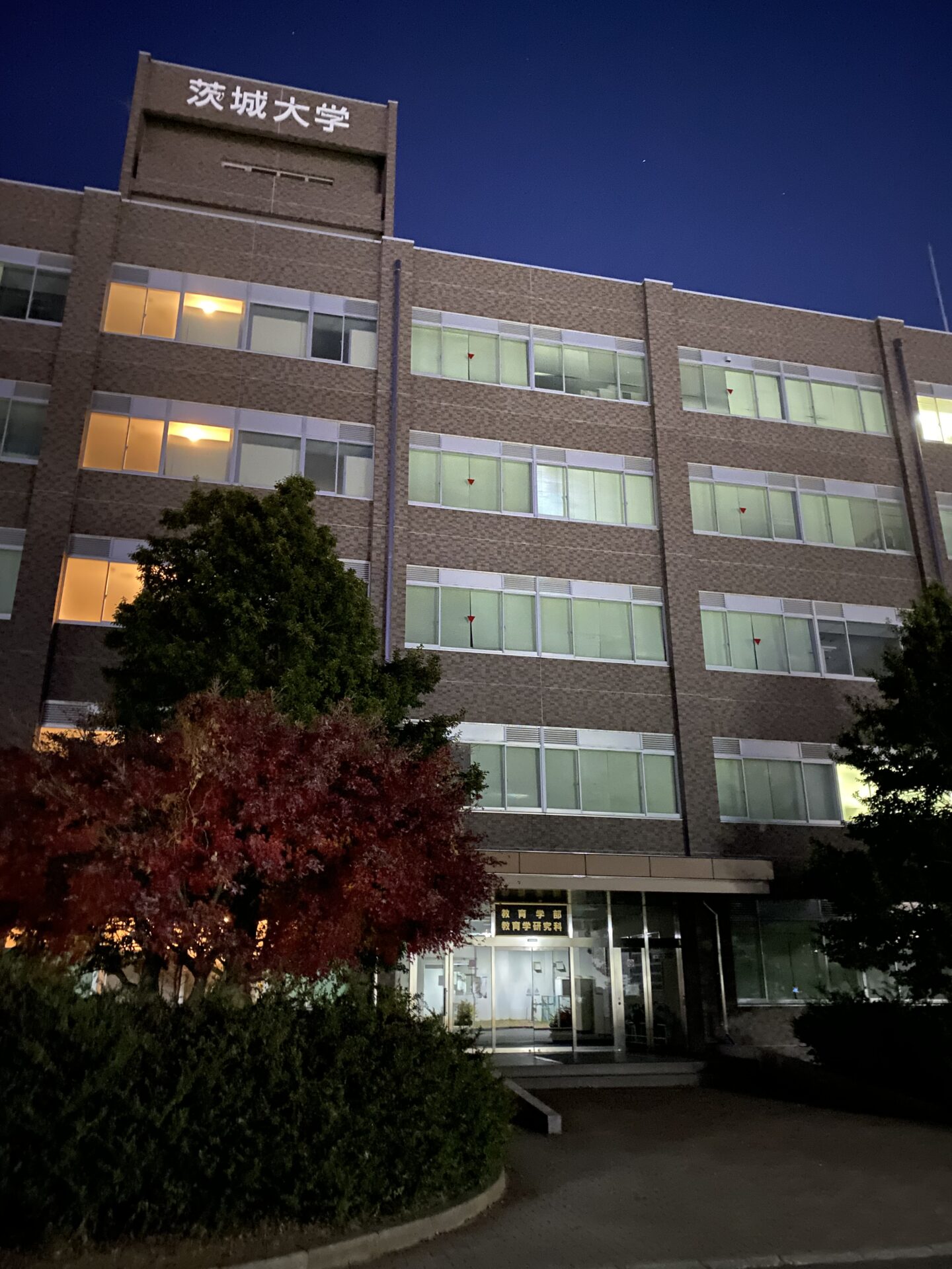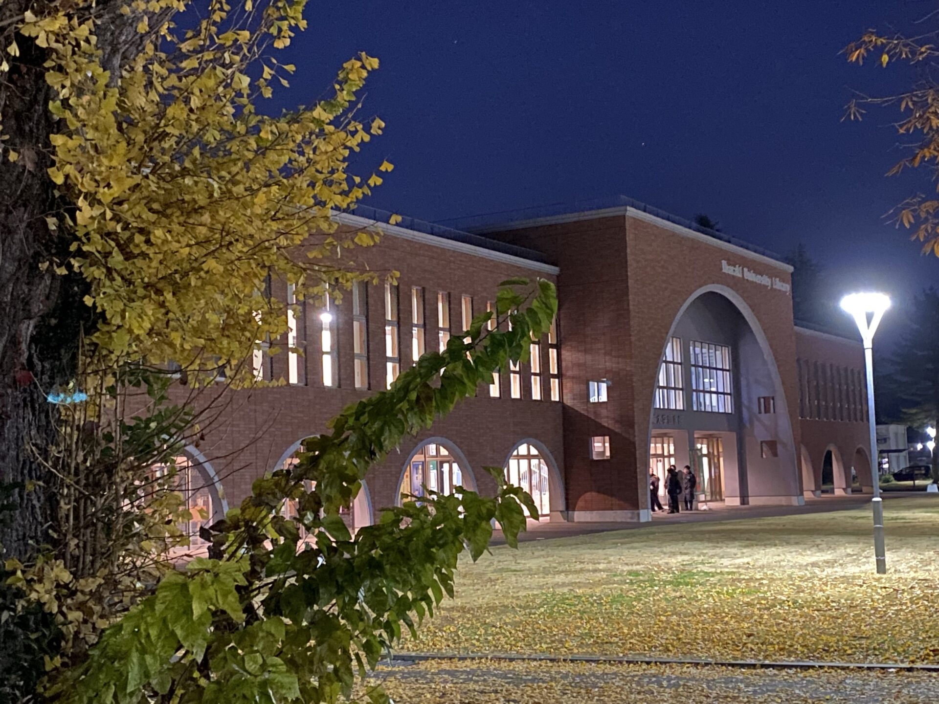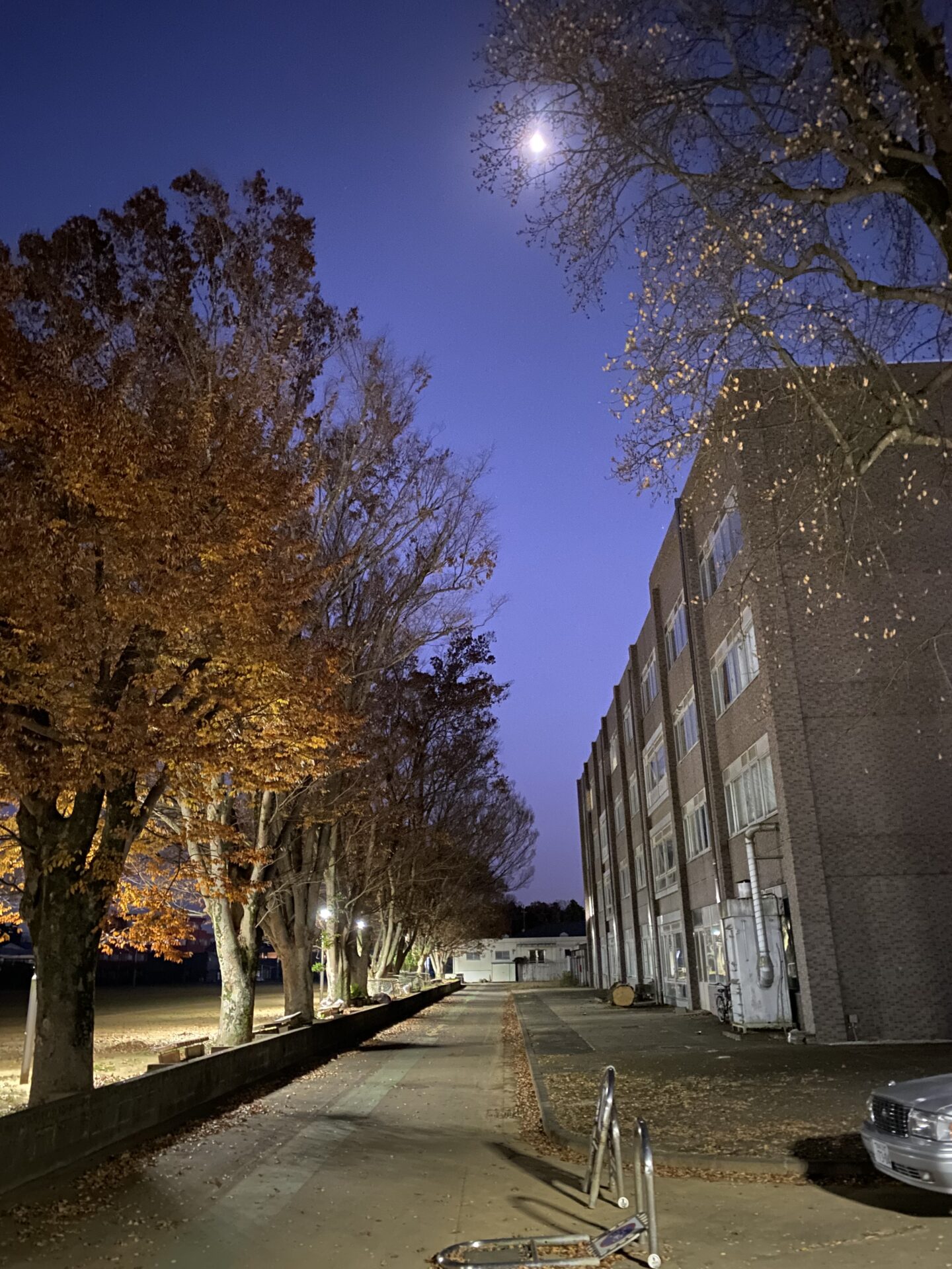 2025年秋の夕暮れ「教育学部C棟前と月」
