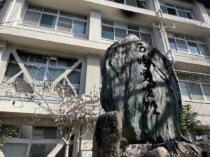 1940年生まれの久保田先生。小学生の時に、パステルで描いた絵を先生に褒められたことがきっかけで絵画に目覚めたそうです。賀茂高校在学時は寄宿舎から通学し、同級生と切磋琢磨しながら技能を磨かれました。「他の科目はさっぱりじゃった」と笑いながら想い出を語ってくださいました