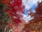 イロハモミジをはじめ、登山道沿いの木々の紅葉はすでに終盤に差し掛かっています。敷き詰められた落ち葉に足を取られながらも、整備された階段状の登山道をスイスイと進み、管理棟から約35分で頂上へと到着しました。