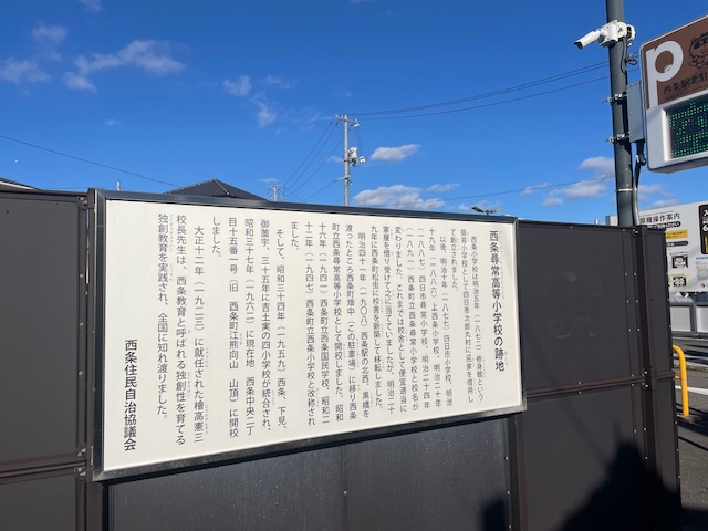 賀茂高校の歴史のスタート地点は、JR西条駅の北口周辺にあたります。西条駅西側の跨線橋(黒橋)にほど近い有料駐車場にはかつて西条町立西条尋常高等小学校がありました。