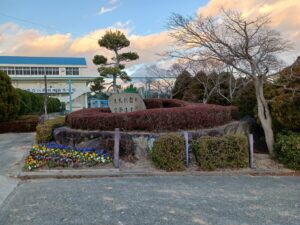 これで議事はすべて終わり、最後に校長と実行委員長から挨拶をして実行委員会業務は完了し解散となりました。次回の事務局だよりでは事業収支決算の詳細と実行委員長挨拶の内容をお伝えします。写真は1月21日に撮った校訓碑です。寒空にパンジーが愛らしく咲いていました。