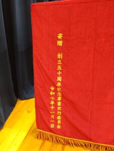 今回は《母校創立50周年記念事業》の決算報告をします。収入の部は同窓会繰入金800万円とPTA繰入金400万円、記念誌販売18万円、祝賀会費145万5千円、寄付金15,000円、預金利息14,294円の総合計13,664,294円でした。