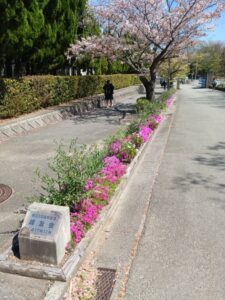 峰友会が母校創立30周年記念で寄贈した花壇に花がいっぱいで新入生を祝ってくれていました。桜の花とのコントラストがたいへんきれいでした。手入れしていただいている方々に感謝を申し上げます。今年度から、この【事務局だより】は月2回更新に変更させていただきます。
