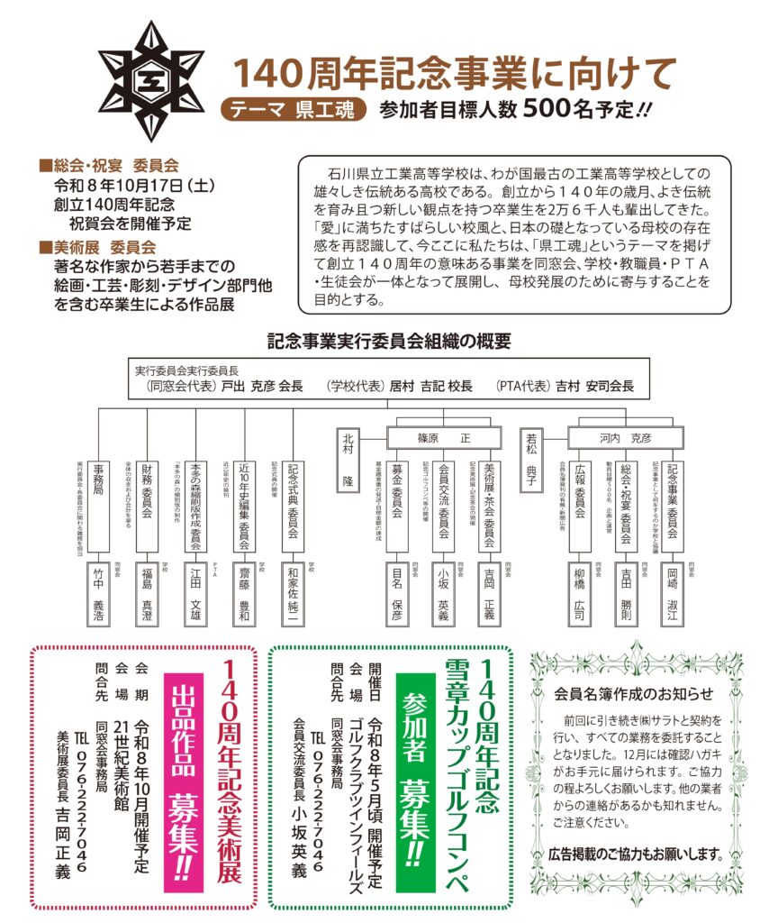 石川県工業高校同窓会ホームページにご来場いただきありがとうございます。