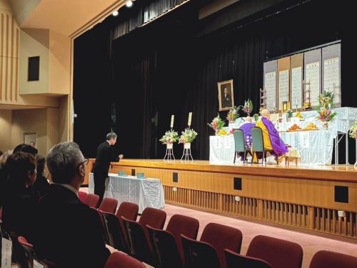 山根理事長の祭文では友國晴子先生の生徒への誠実で思いやりの有る行動や言葉がけなどを先生の口調そのままでお話され、エピソードを交えながらご遺徳を偲びました。