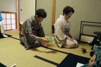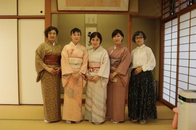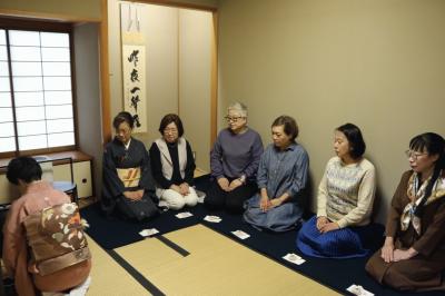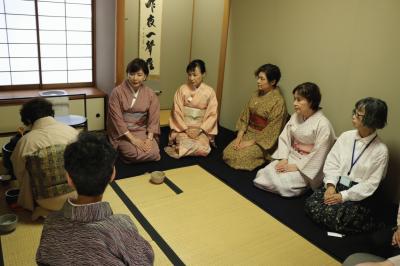 これまではバスを利用しての親睦旅行でしたが、今年は「茶道体験とお食事」として、