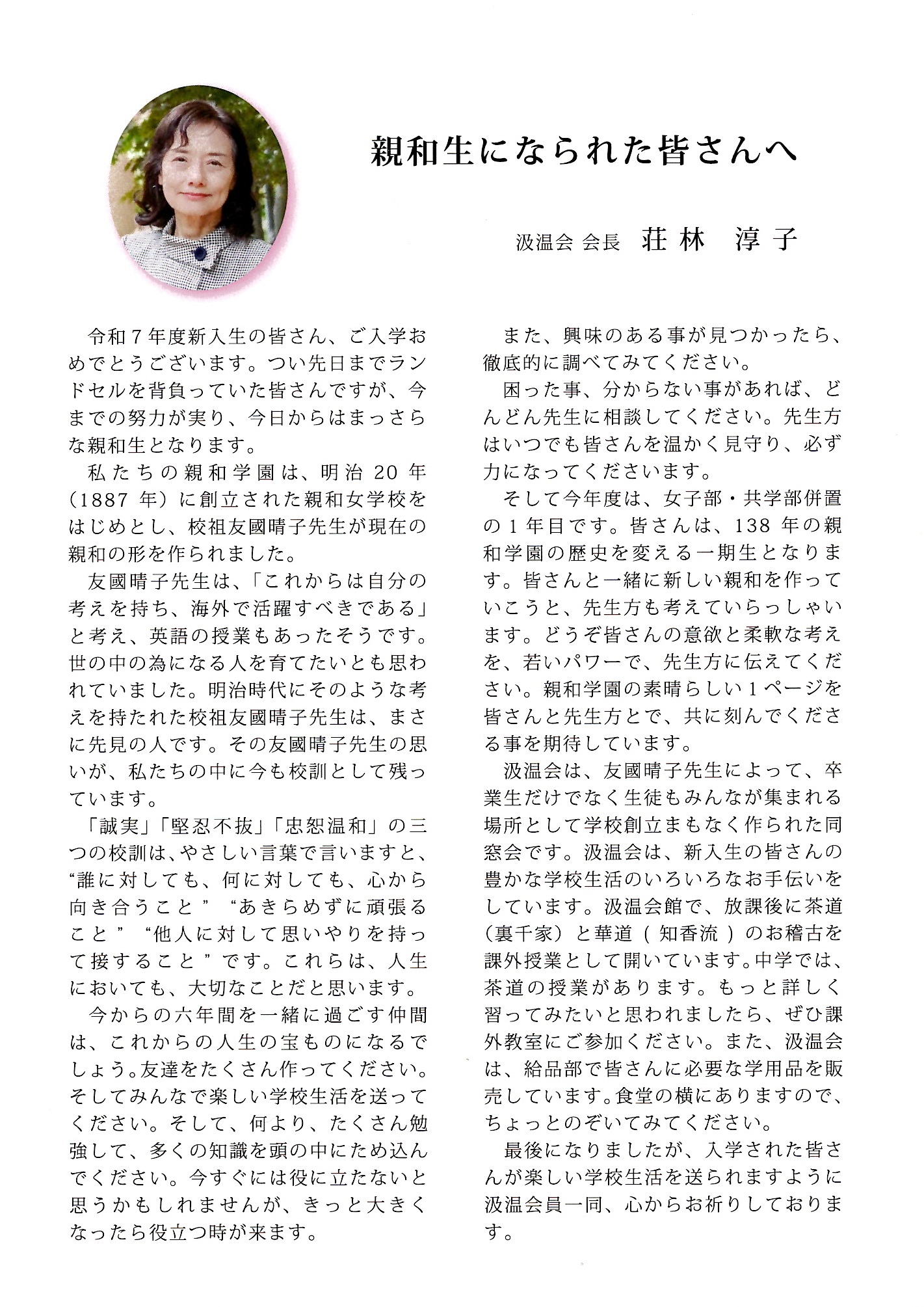 これからの親和での生活が楽しいものとなりますよう願っています。
