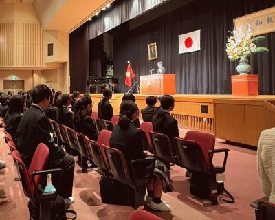 式辞で校長先生は、校訓の教え通りにいろんなことを学び、友人を作って欲しい、とお話されました。