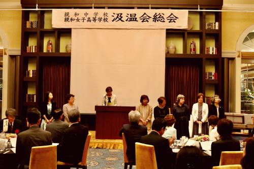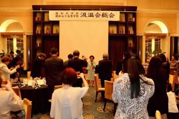 歓談中に、常務理事の和田靖之様、育友会長の金城和美さん(高校45回)にお話をいただきました。