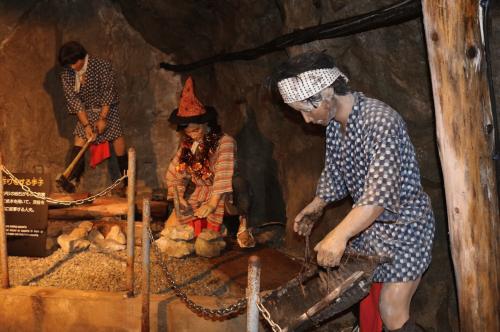 その途中、イケメンのマネキンが銀山ボーイズとして、当時採掘の現場を再現しています。