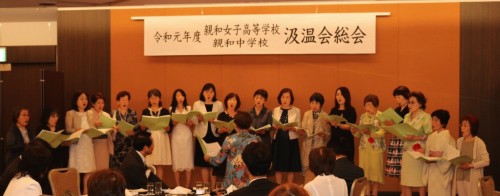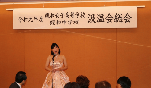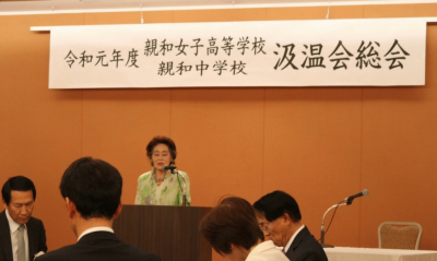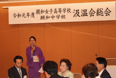 開会宣言のあと、大利慶子会長が挨拶されました。汲温会が今年役員の改選であることから在任中を振りかえってお話され、伝統の大切さを述べられました。
