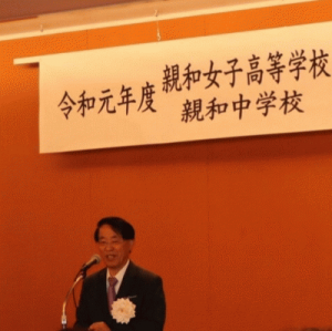 来賓の方々からも祝辞をいただきました。山根耕平理事長より少子高齢化など「三つの波」について、三井知代神戸親和女子大学学長より親和アリーナという第2体育館が来春完成予定であることなど大学の状況のお話がありました。