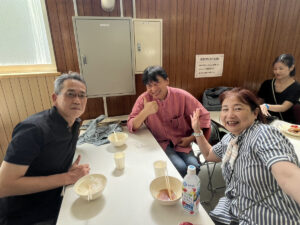 交流会では、出席者の卒期のアルバムを広げながら懐かしい話に花が咲き、総会終了後も食堂でお昼を食べながら引き続き楽しいひとときを楽しむ会員の方々の姿もありました。