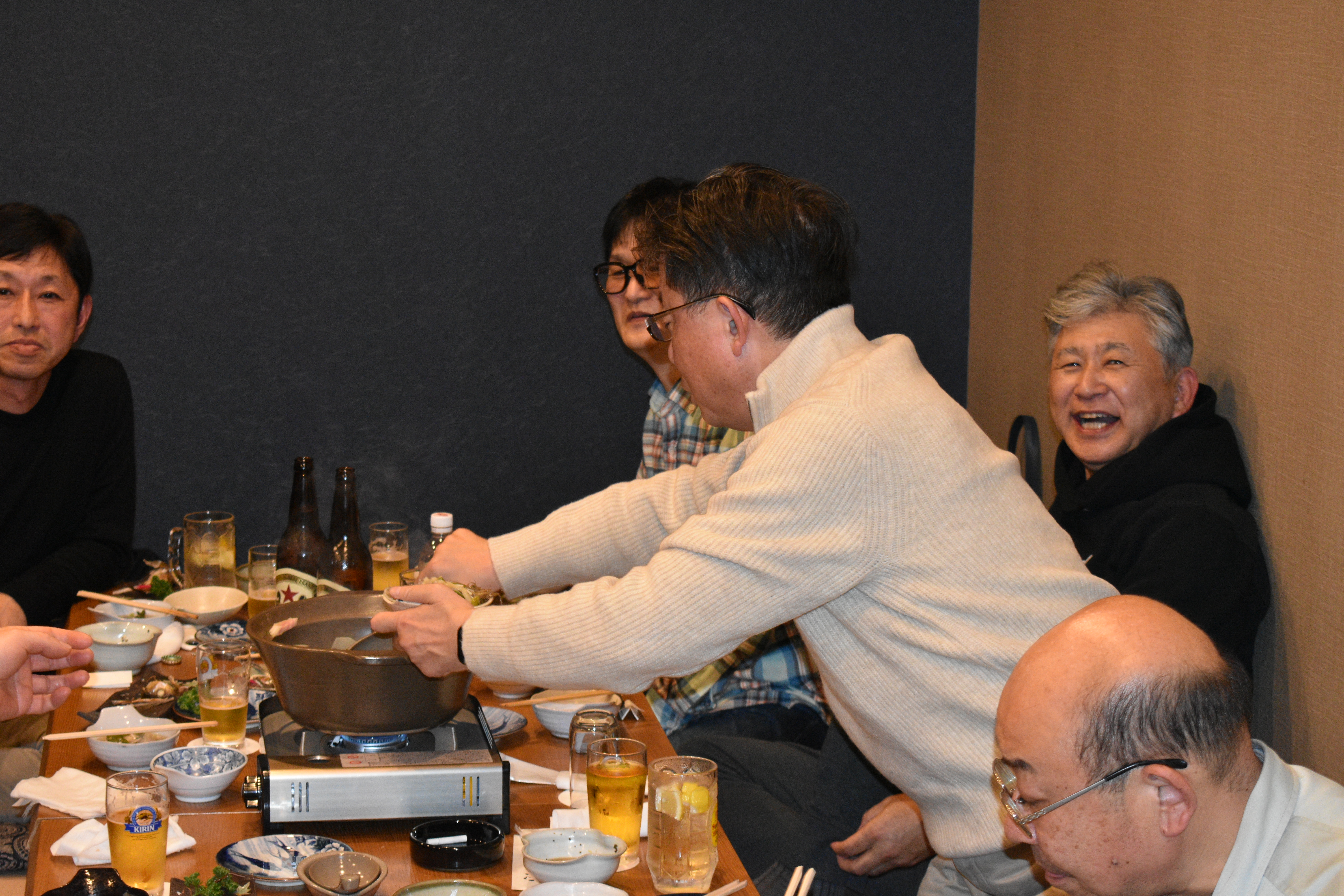同期会・支部同期会報告 高42 【大忘年会】 同期会・支部 2025.12.26 高42回の大忘年会が、12月25日に地元の名店「いづみ」にて催されました。 旧交をあたため、乾杯! 同級生の前では、社長もみんなおなじ 代表の天笠学年幹事長は 「高42は結束が固い。新年総会の出席者も高23回、高24回、高32回、高33回に次いで第5位。ゆくゆくは新年総会出席者数No.1をとりたい!」と、意気込む。 回を重ねるごとに、口コミで参加者が増えている高42。旧交をあたためながら、母校と金山同窓会の将来について語り合いました。 FacebookXBlueskyHatenaCopy