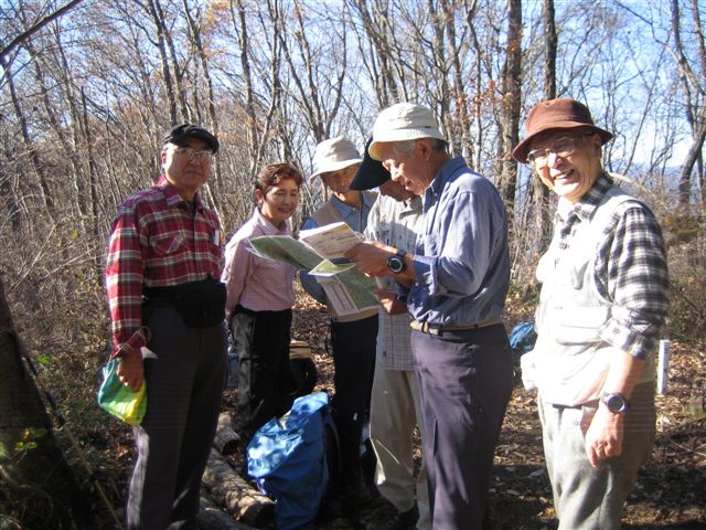 ゆっくり休んでから頂上を後にし、下山を始めました。道はそれほど急ではありませんが、落ち葉が積もっているので危険です。滑らないように慎重に下りましたが、、何人かは尻持ちをつきました。やはり歳のせいでしょうか?