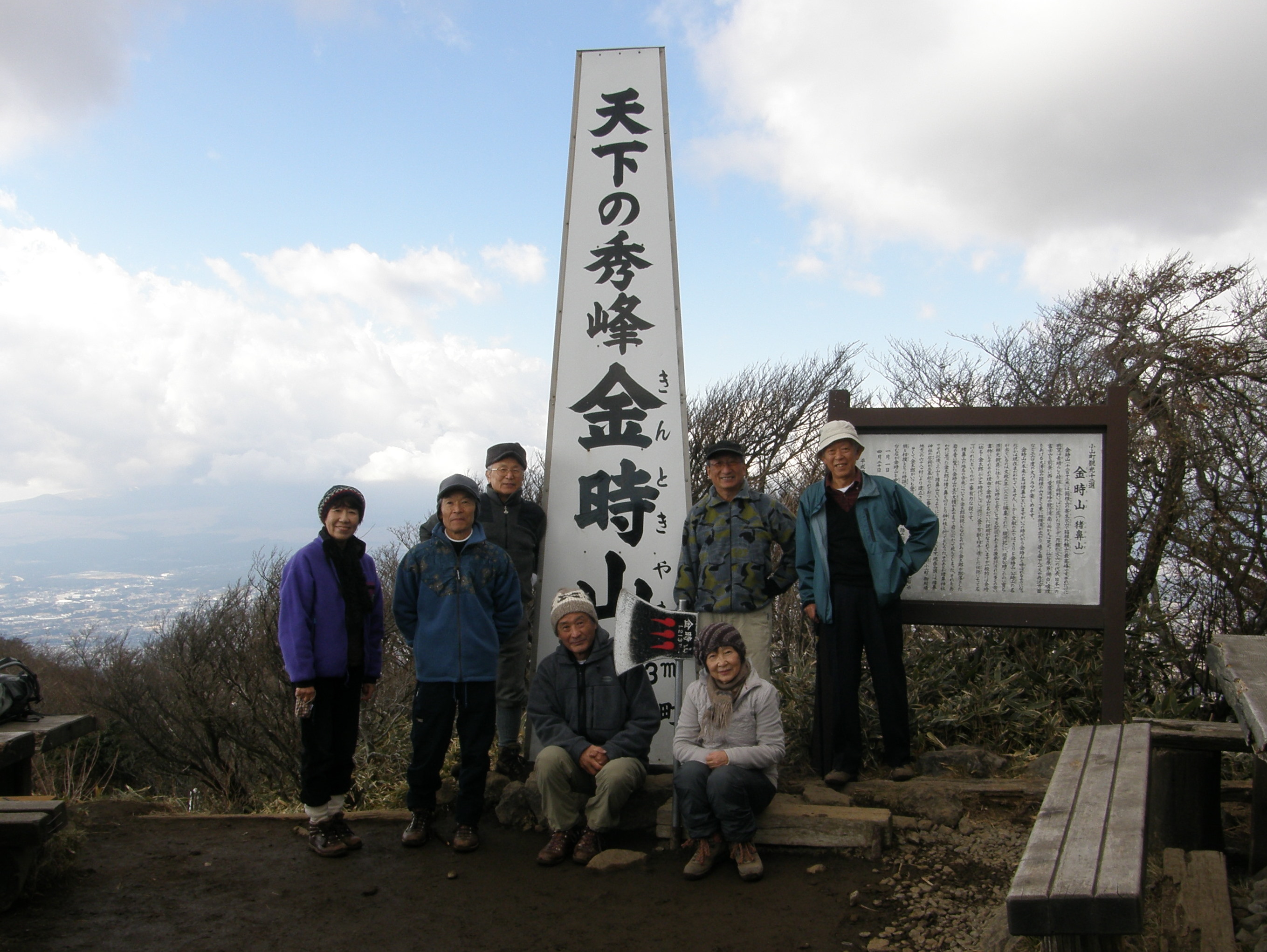 金時山、これまでに、何回計画したでしょう。いつも天候に恵まれず見送られてきた山です。今年こそはと、お天気の安定しそうな年末を狙って登ることにしました。平成23年12月19日の月曜日、7人の仲間が集まりました。