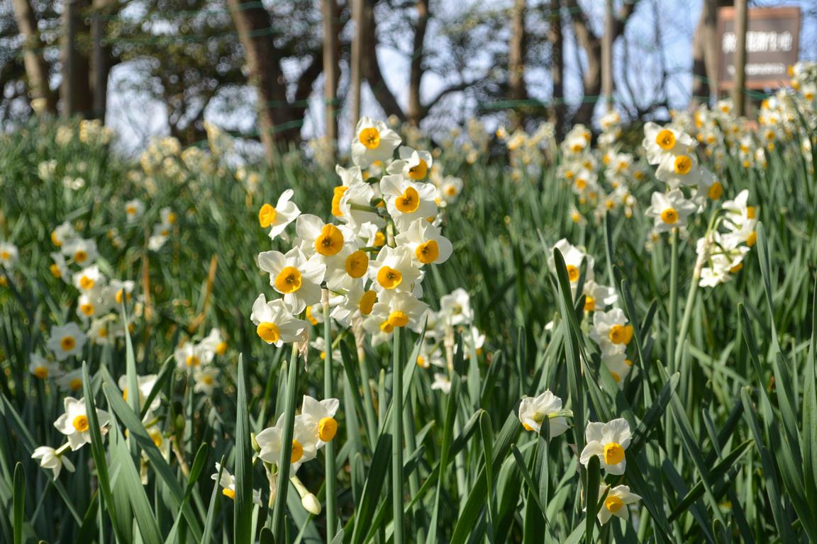 葉の落ちた木々の姿が美しい尾根歩きは、なんとも長閑な愉しいものでした。山頂の展望台からは富士山こそ薄曇りで見えなかったものの、相模湾の海岸線にやさしく寄せる白波の景にこころ癒されました。同じようなゆるやかな起伏を辿るうち、水仙の群生や思いがけず咲いていた桜の花にも出合いました。