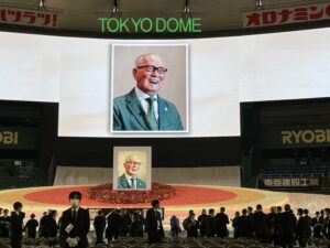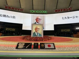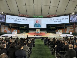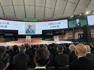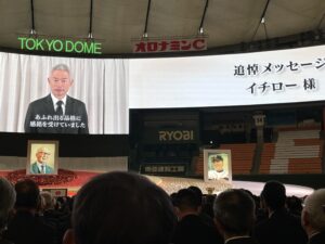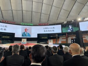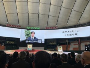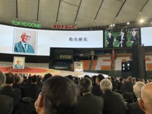 野球つながりのご縁で、本日(令和7年11月21日(金))、「ミスタージャイアンツ 長嶋茂雄 お別れの会」へ、加賀谷会長、井原・圓城寺両副会長とともに、出席してまいりました。黙とうののちに、世界のビックワン王選手とゴジラ松井選手からお別れの言葉がございました。それぞれ、長嶋先輩と濃密な時間を過ごしていたことが改めてうかがえる素敵なお言葉でした。また、大谷選手とイチロー選手からは追悼メッセージが寄せられました。ミスターの偉大さが伝わるメッセージでした。