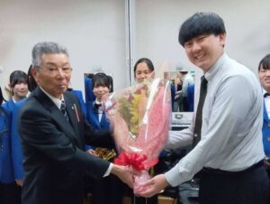 野﨑会長から渡邉先生に花束を贈呈させていただきました。