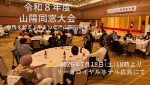 令和8年度同窓会大会 お知らせ 2026.04.10 お知らせ 令和8年度の同窓会大会下記の通り実施致します。 申し込み方法等は後日お知らせ致します。 日時:7月18日(土)18時より 場所:リーガロイヤルホテルにて 会費:8000円 (令和6年・7年・8年卒業生は無料) みなさんお誘い合わせの上ご来場下さい。