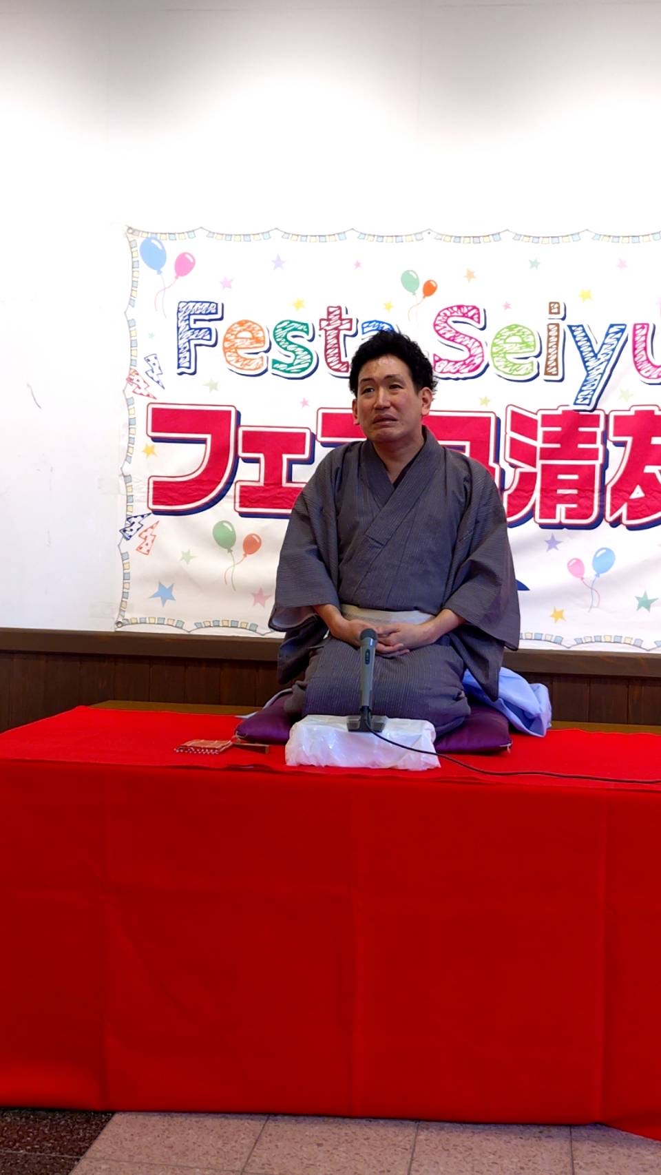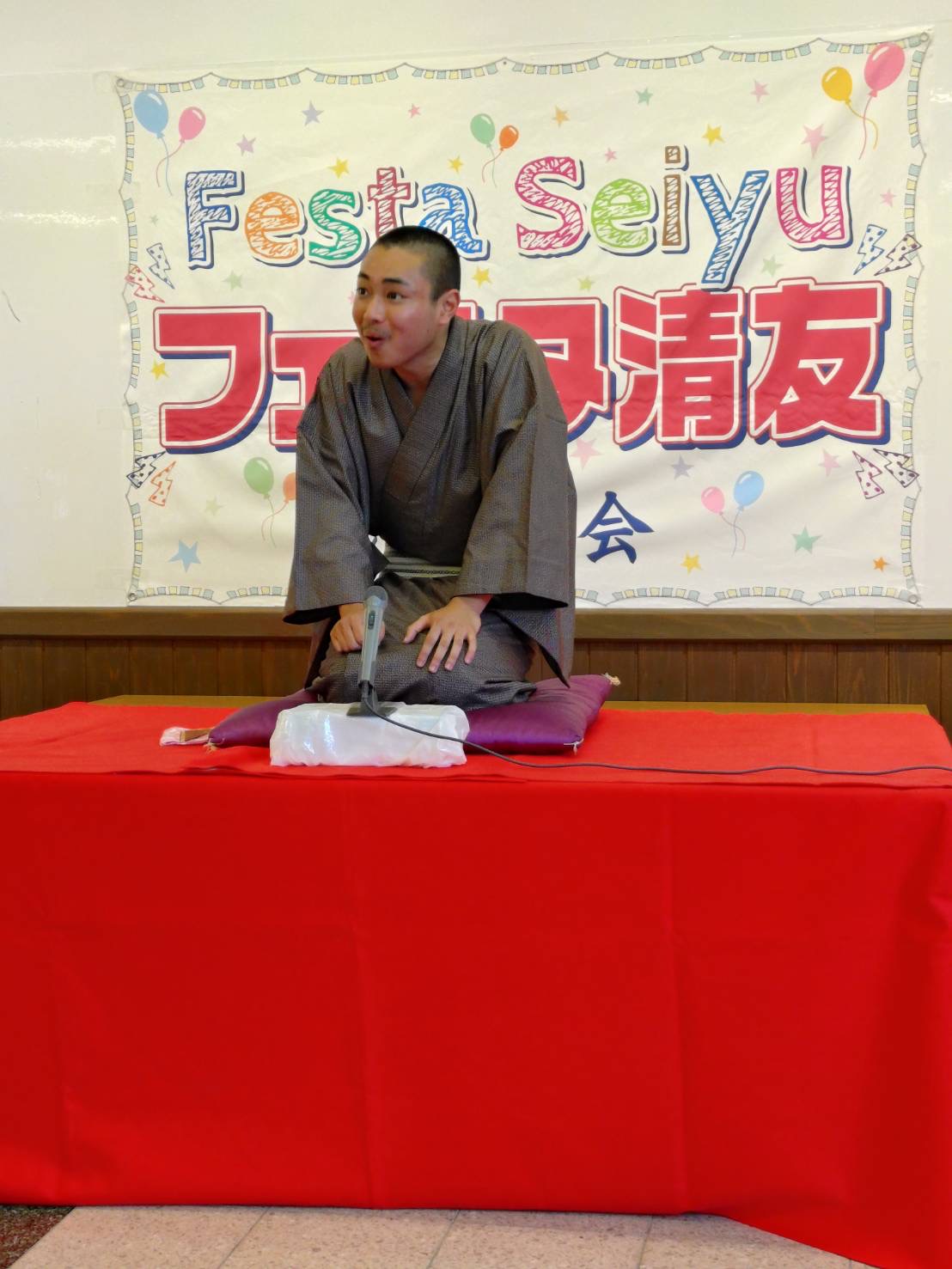 午後は、村松直さん(高77回)と桂小留さん(高60回沖守翔さん)の落語で、満員のラーニングスタジオ(食堂)が笑いの渦に包まれました。
