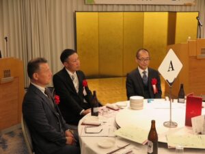 その後、会長挨拶、ご来賓の竹内校長先生のご挨拶に続き、大先輩の吉岡さん(高8回)の乾杯のご発声で、お食事と歓談がスタートしました。