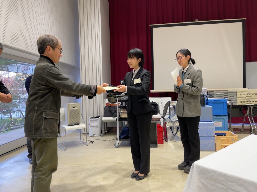 懇親会・まとめ: 講演会終了後の15時からは懇親会が開催されました 。会の中では「第29回二葉会奨励賞」の授賞式が執り行われ、受賞論文5件のうち、礒和華さん(緑環R7)と川口遥さん(緑管R7)のお二人が出席されました 。 最後は、元千葉大学応援団長である山田康博氏(造園S47)のリードのもと、出席者全員でエールの交換と校歌斉唱を行い、盛会のうちに終了いたしました 。世代を超えた交流が深まり、今後も同窓の絆を大切に活動を継続してまいります。