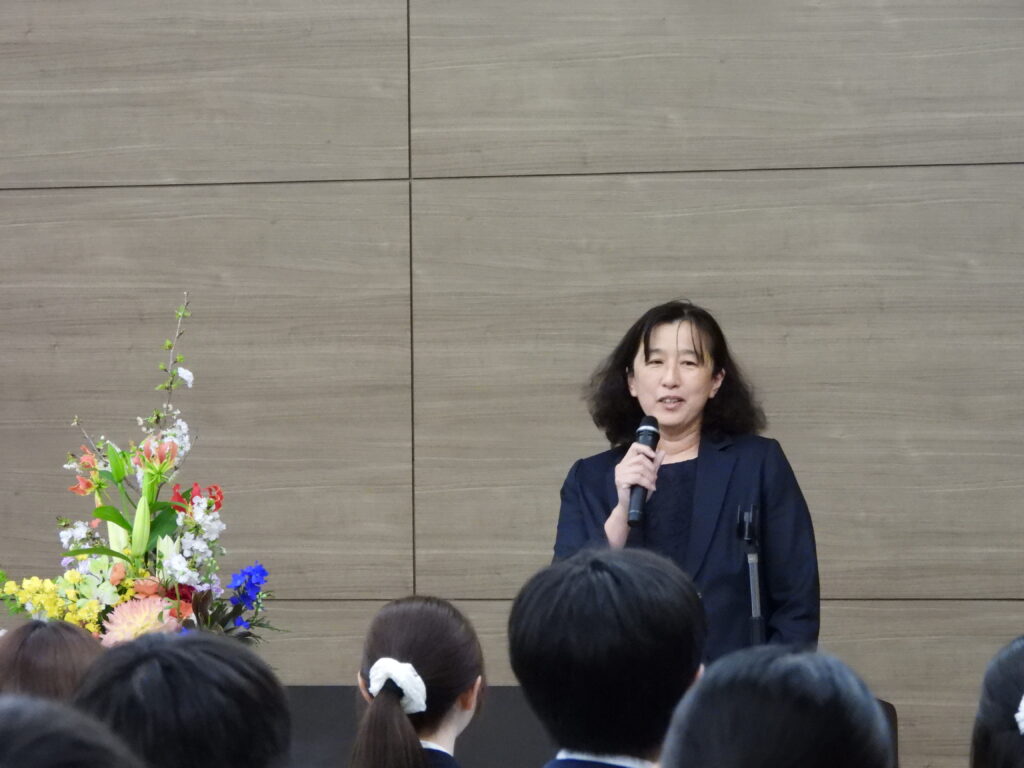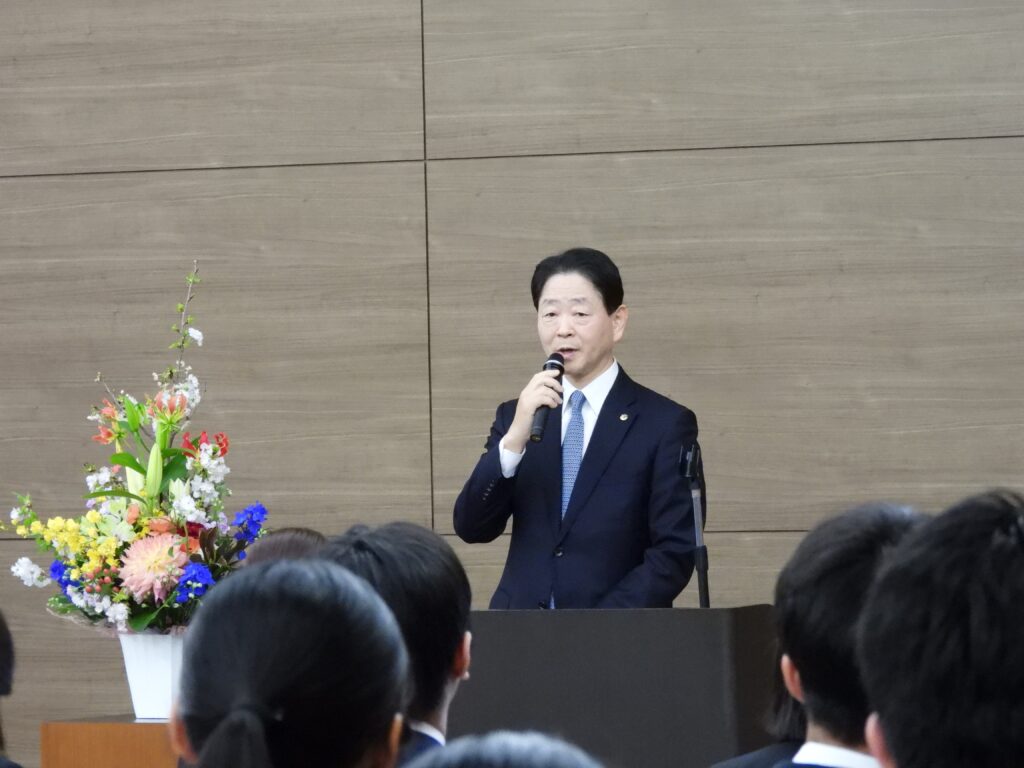 また、来賓として臨席された前田恵理後援会会長からは、激励の意を込めた歌によるエールがあり、新入生をはじめ出席者から手拍子が起こり、会場の緊張がほぐれました。