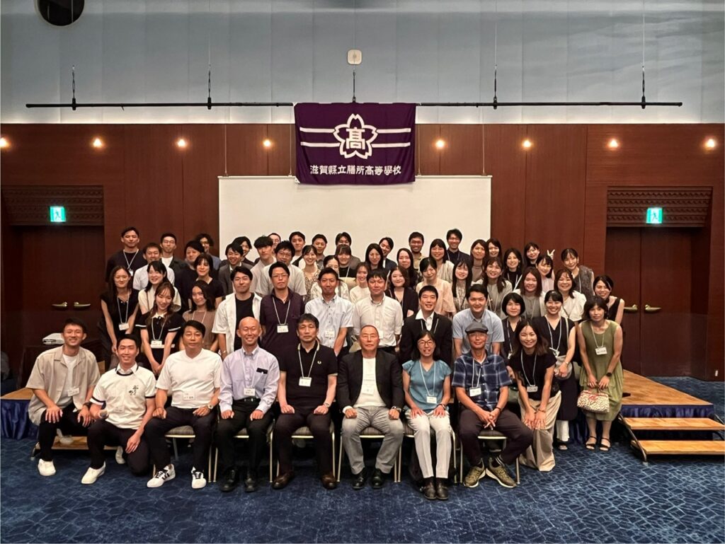 令和7年8月10日、琵琶湖ホテルにて卒業20周年記念同窓会を開催しました。お盆前の何かと忙しい時期でしたが、恩師の先生方6名を含め、総勢61名の同窓生に出席していただきました。新型コロナ感染症の関係で15周年同窓会を中止したこともあり、10年ぶりの同窓会となりました。久々の再会で会話に花が咲き、開宴前からあちらこちらで楽しい声が聞こえていました。